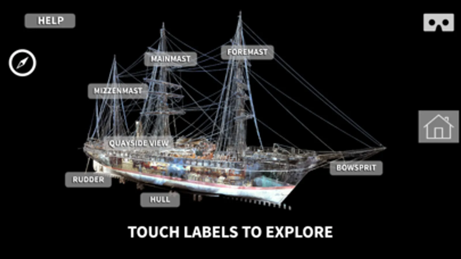Use this app to view the stunning Antarctic exploration ship, RRS Discovery. Navigate your way around the deck and experience the ship in all her glory fully rigged with incredible 360 photospheres. You can also gain access to views of the rudder and hull, usually inaccessible within the dry dock.