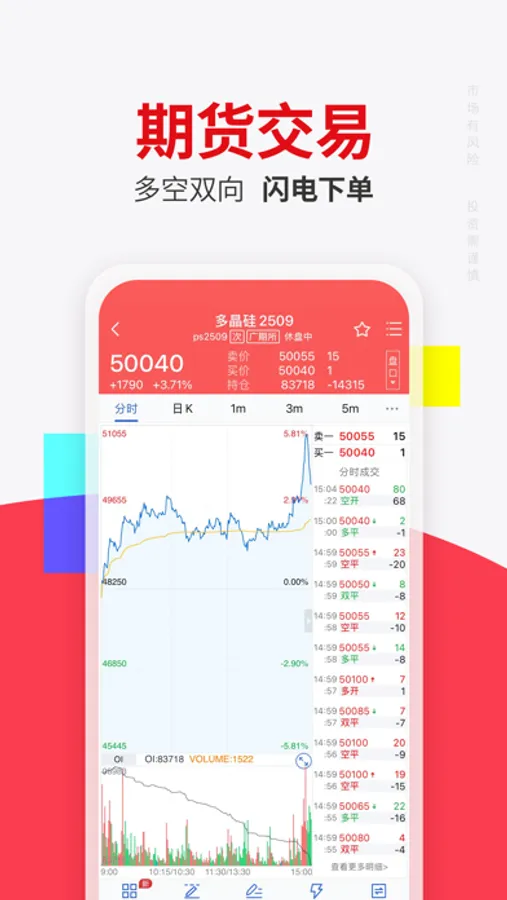 ·期货交易及业务办理——手机APP随身交易,支持云条件单,支持权限增开、账户激活、密码修改等功能,让您足不出户办理业务