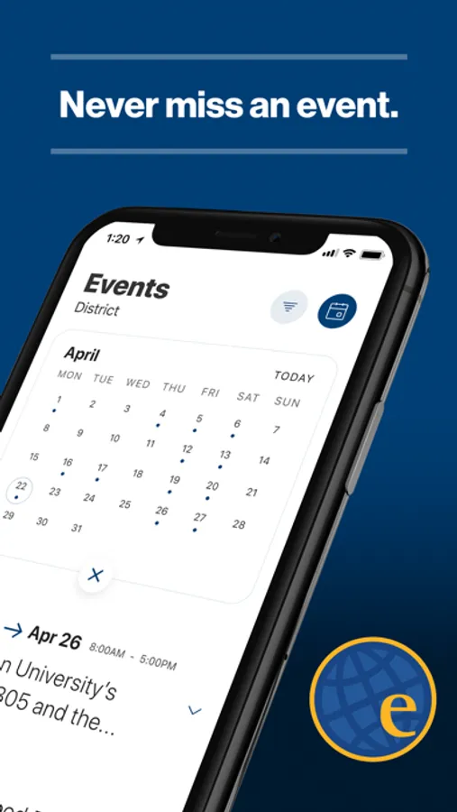 The event section shows a list of events throughout the district. Users can add an event to your calendar to share the event with friends and family with one tap.