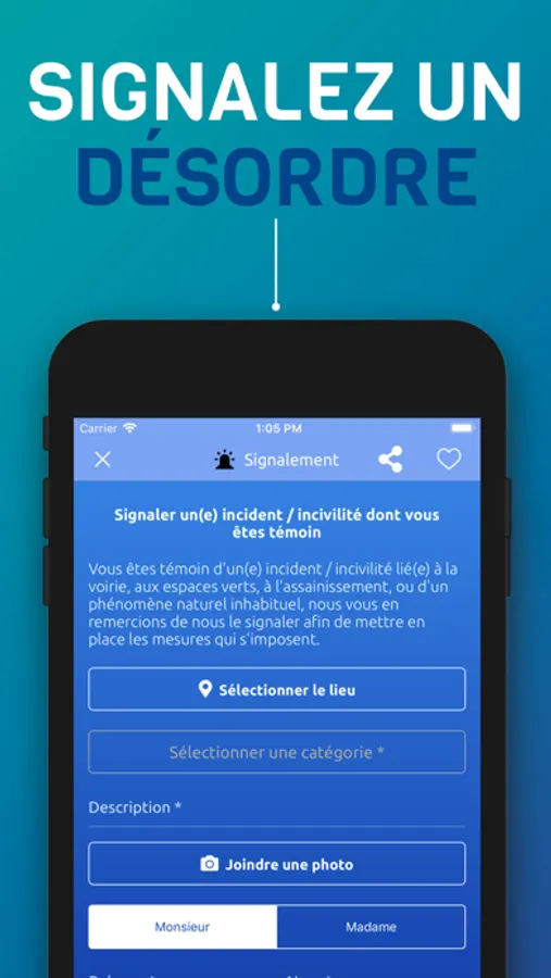 L’application permet aux habitants de signaler simplement et rapidement un désordre ou une incivilité, et de déclencher ainsi une intervention dans les meilleurs délais des services sur la ville de Nice.