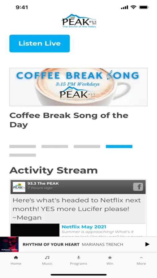 93.3 The Peak is the Sound Of The Valley. The Peak is proud to be closely connected to everything that happens in the Alberni Valley and delivers a mix of classic hits spanning decades of familiar music, through today's hottest artists.