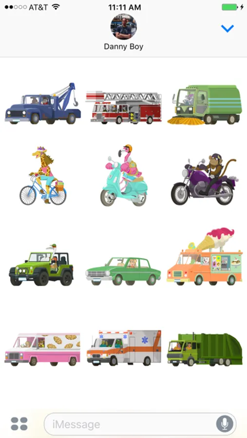 Combine your love for animals and vehicles with over 25 colorful stickers! From the polar bear's ice cream truck to the lion pilot's helicopter, this sticker pack will ignite your chats!
