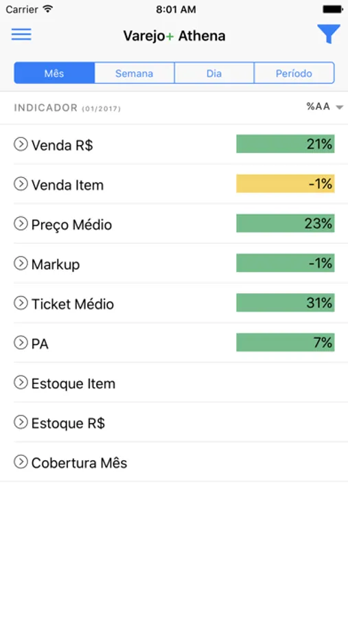 Aplicativo para monitoramento dos indicadores/KPIs de Loja. Tenha o monitoramento de suas vendas, margem, estoque, desempenho de vendedores, etc diariamente. Atualização automática com o sistema das suas lojas. Uma ou mais lojas com um ou mais sistemas... Tenha tudo um apenas um lugar na palma de sua mão.