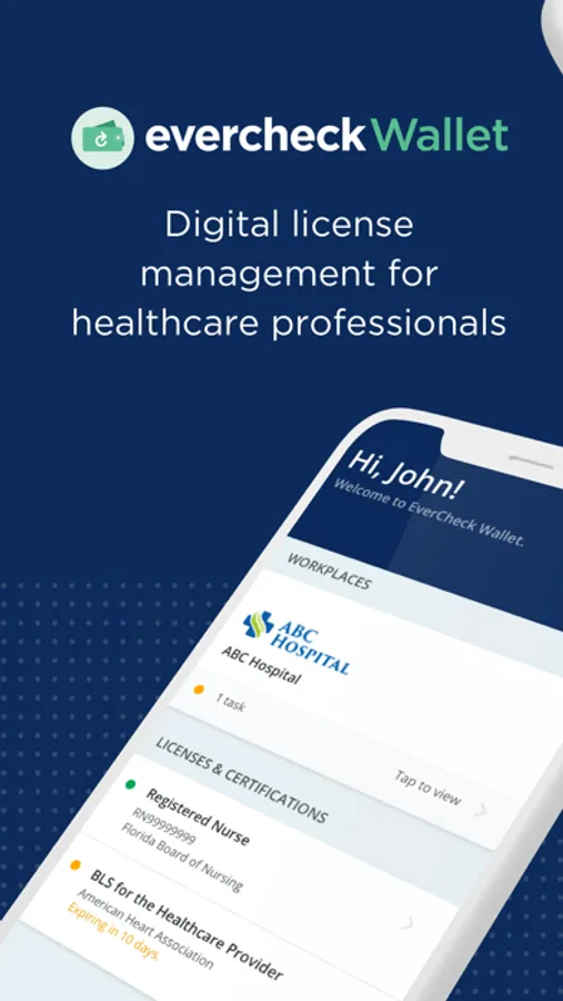EverCheck Wallet was designed for busy healthcare professionals who need a simple way to manage their licenses, certifications, and registrations.