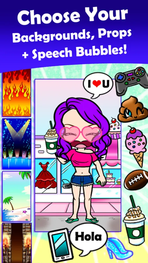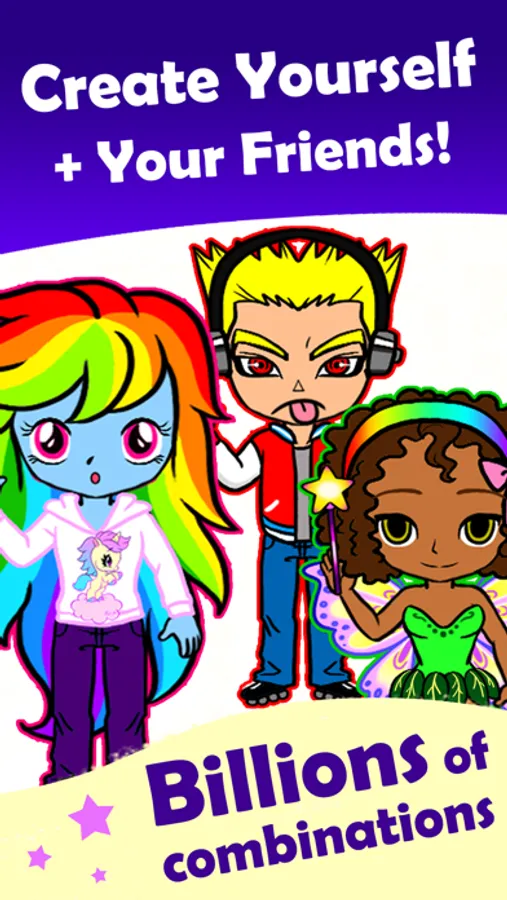 Have fun letting your imagination run wild! With hundreds of items and billions of possible combinations, you'll spend hours with Fun2Create: Design Yourself! Try creating yourself, your friends and family, or your favorite characters! You can then share your creations directly to Facebook inside the game, or save them to your mobile device and share them to your other favorite social media sites, like Instagram. You can even use them as your avatar pics!