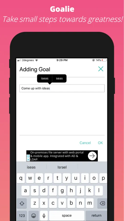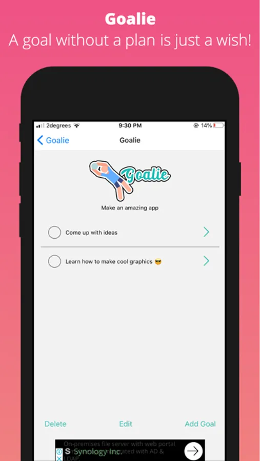 Goalie is designed to help you achieve your goals by letting you break them down as far as you need.
