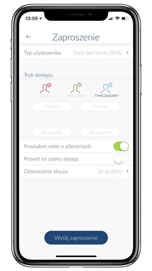 * wysyłanie zaproszeń SMS'em do osób, które nie posiadają aktywnego konta