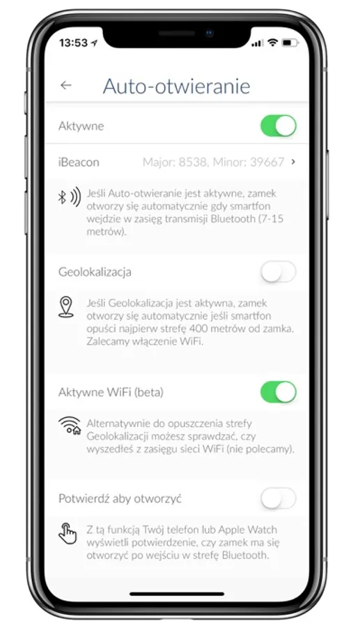 * ustawienie dodatkowego potwierdzenia automatycznego otwierania