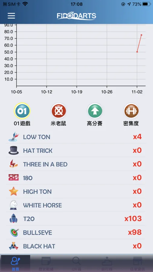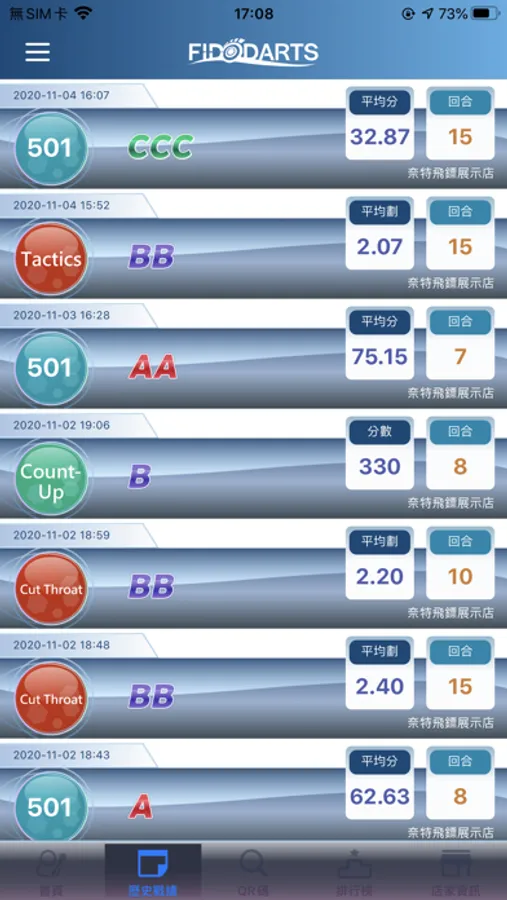 FIDODARTS is the exclusive app for a revolutionary bristle steel tip dart machine with auto-scoring. In this APP, you can set up your personal details, choosing your name and uploading your profile picture. Also, you can scan QR Code to log in and record your performance. There is a trend chart for you as well to see your improvement by day, week, or month. In the history section, you can see your scores in each game. What's more, the point of fall of every dart is recorded. Every single piece of information is ready for you. Without a doubt, FidoDarts app is the best dart coach in the world!