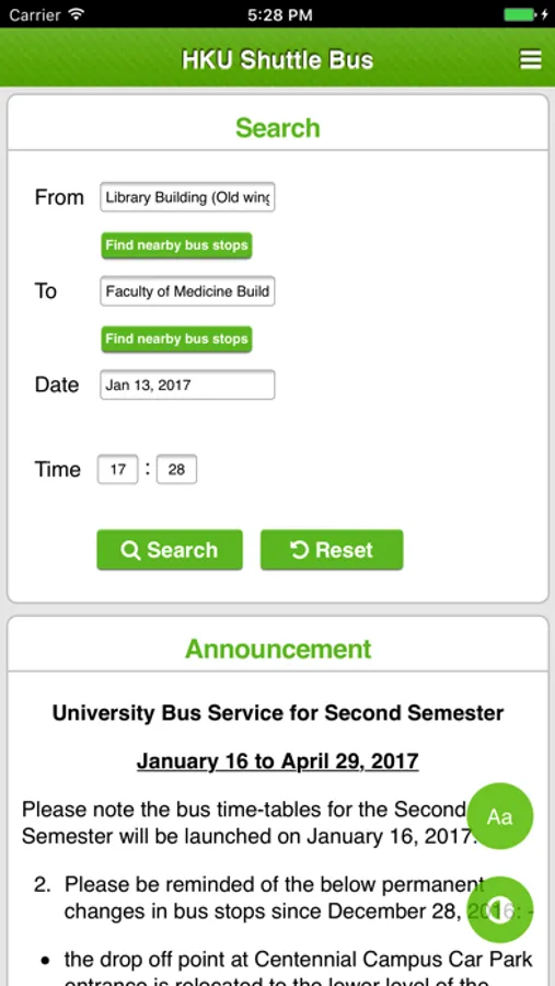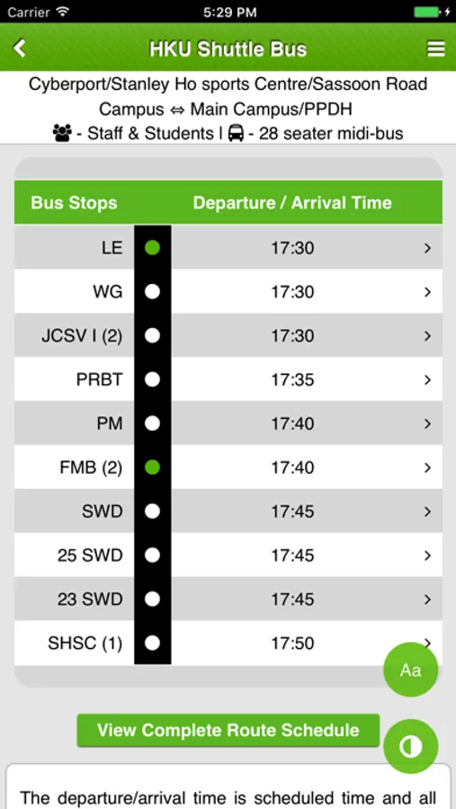 The HKU Shuttle Bus app brings you all useful information related to the shuttle bus service. Information of the routes, estimated journey time, bus stop location will be displayed accordingly. Traffic news will be released when the service has been or is expected to be seriously delayed or suspended. Operation time of bus service right before/after typhoon will be available.