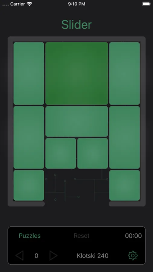 Slider is a fun game based on the 4 by 5 sliding block puzzles first popularized by Lewis Hardy's century old Pennant Puzzle. Free the large block through the "Escape Area" at the bottom center of the puzzle. When a game first starts, a number of smaller blocks will prevent the large block from "Escaping". Move the interfering small blocks out of the way to free the "Big Guy". Move the blocks by sliding them to an open space.
