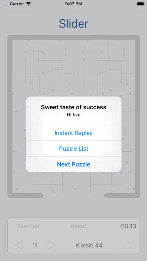 Remember, it's all about the game play. Slider has "Power Push", which lets you move move multiple blocks through multiple spaces with just one swipe, the way the actual game plays. And when you win a game, you get to immediately choose to replay the same game (if your competing with a friend), go to the next puzzle, or see an "Instant Replay" of the game you just won.