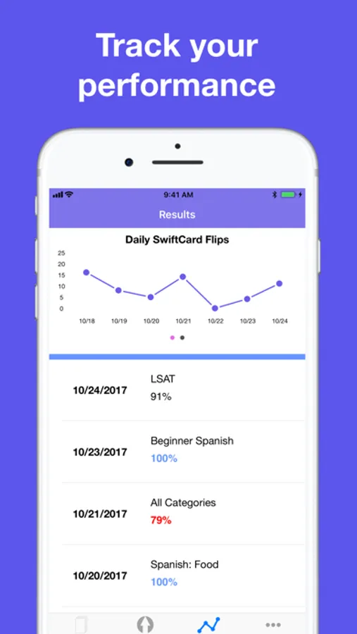 SwiftCard uses a special algorithm to measure your performance on notecards, so the app will create tests that know which subjects you need to prioritize. Measure performance with analytics to motivate you.