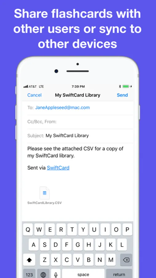 Create one library, then share your flashcards with friends. Export your library and they can import into their SwiftCard apps.