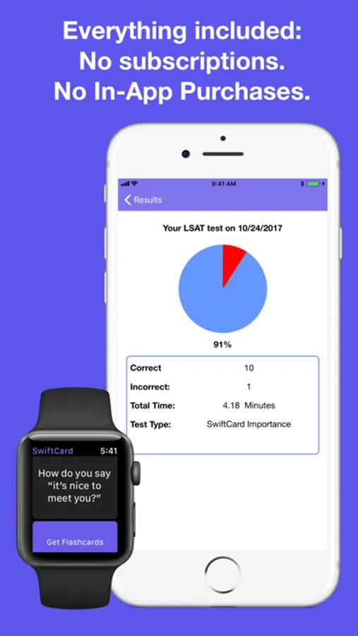 Purchase once, then use SwiftCard on your iPhone, iPad, Desktop, and Apple Watch. Use SwiftCard Cloud Storage (a $1.99 In App Purchase) to automatically sync your flashcards across all of your iCloud Devices.