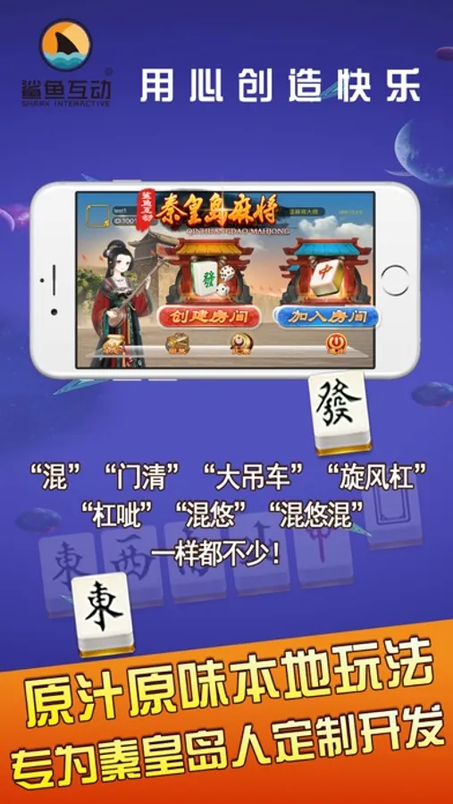 《鲨鱼互动》秦皇岛麻将为”千雷科技“精心打造的手机端麻将竞技品牌。游戏以“原滋原味,当地玩法”为特色,结合“社交+竞技”的新理念,让朋友间可以利用手机轻松约局,不受时间,距离,场地和设备的约束,自由的切磋牌技,交流互动,享受朋友之间的乐趣。《鲨鱼互动》注重“圈子,社群,分享”,将在各地成立以麻将民俗文化为主题的社群“雀友会” 并将组织“雀神争霸赛”等一些列精彩的有奖赛事活动,为您带来全新模式的麻将娱乐体验!