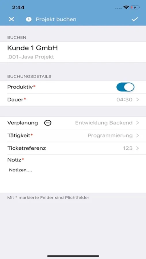 - Erfassen Sie Ihre tägliche Arbeits- und Projektzeit