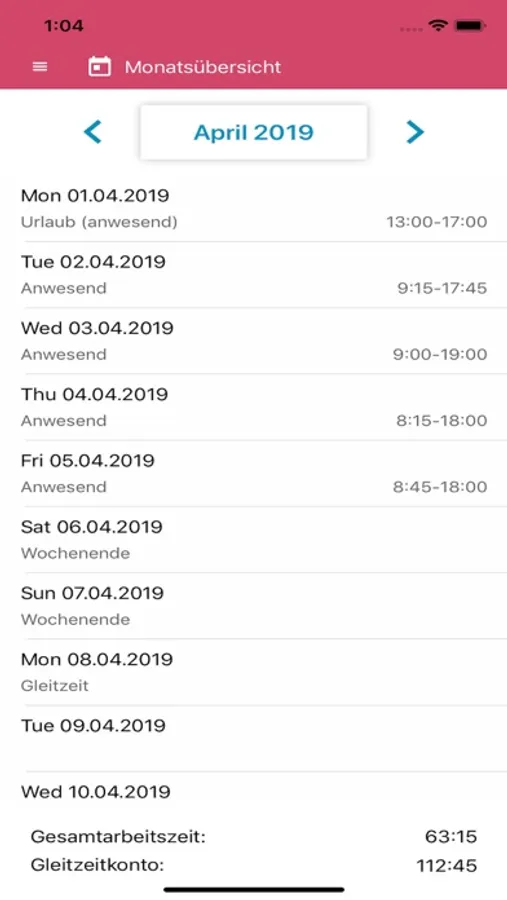 - Erfahren Sie übersichtlich die Arbeitszeiten und Anwesenheiten eines Monats