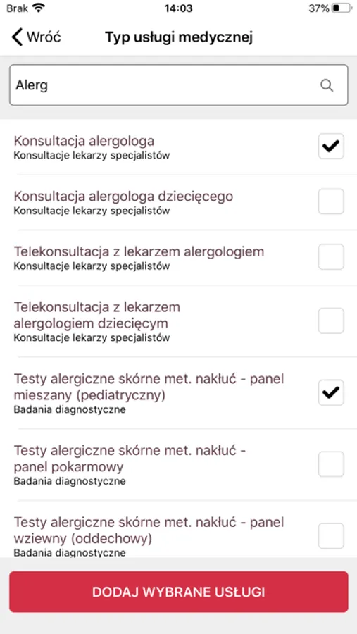 Umożliwia w kilku prostych krokach zamówienie usługi medycznej. Spośród dostępnych usług wyszukaj lub wskaż tę, z której chcesz skorzystać. Podaj preferencje dotyczące terminu realizacji oraz sposób w jaki mamy się z Tobą kontaktować. Wskaż placówkę, w której ma odbyć się wizyta lub lokalizację, w pobliżu której mamy jej dla Ciebie wyszukać.