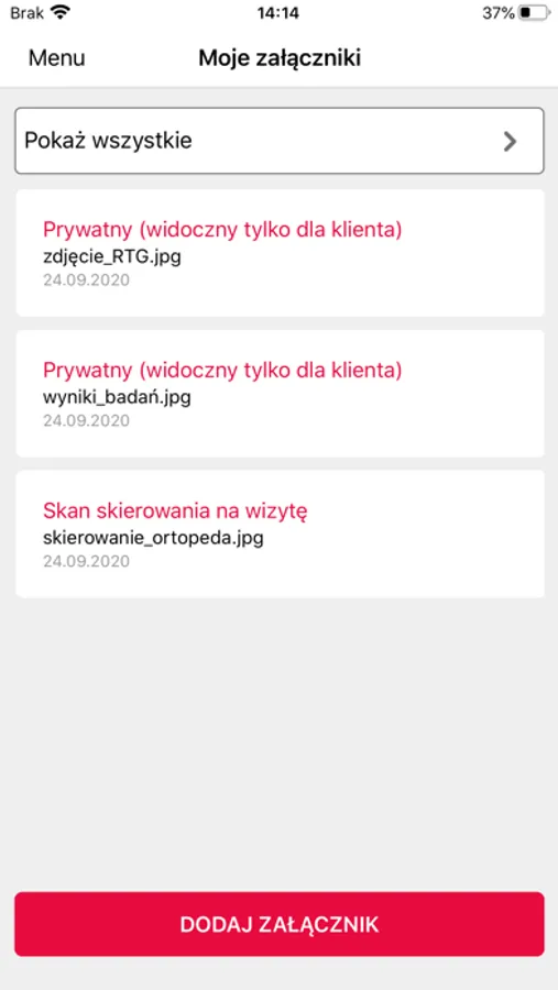 • funkcjonalność umożliwiająca przechowywanie dokumentacji medycznej [widocznej tylko dla Klienta] i przesyłanie skierowań na badania,