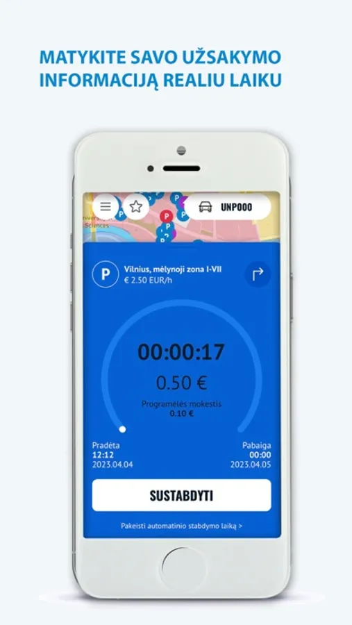 In closed parking lots, the app is activated as soon as you enter the parking lot and the car's license plate number is scanned. Then you no longer have to choose a parking zone, because the app identifies it for you. (This is how the app works in the parking lots of Vilnius Airport).