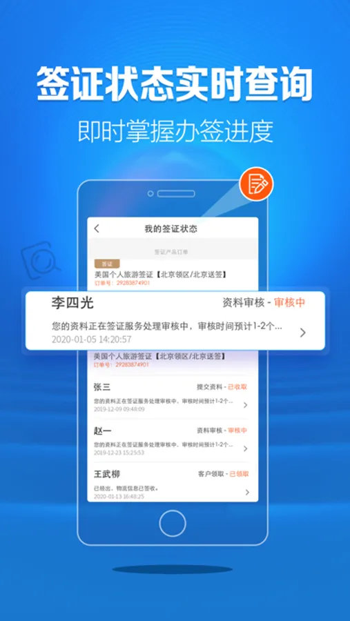 【签证服务进度查询】选择进度查询功能可全程追踪服务,随时监督服务质量
