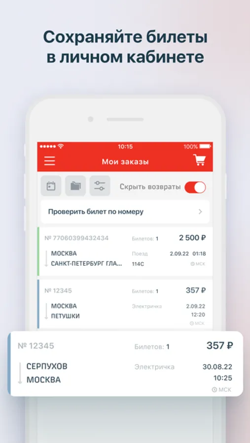 «РЖД Пассажирам» - официальный мобильный сервис ОАО «РЖД» по продаже билетов на поезда без наценок и переплат.