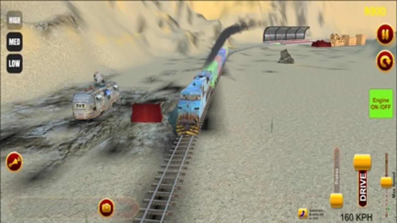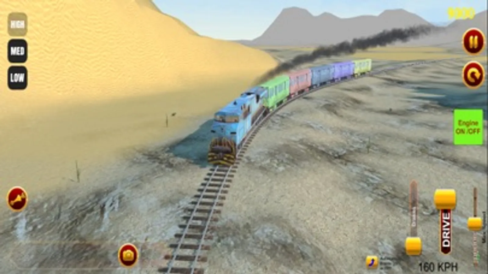 This 3D rail engine simulation game lets the player drive and explore some of the world's most famous railways in Europe and USA country sides and huge plains and parks. The railway station game has series of stations and one green box on each rail station to let player know to stop. Player has to become valiant and legend driver to control train at high speeds while enjoying the three type of horizons such as Snow winter environment in Canada, green plains of leafy and rocky valleys of Europe and Sahara desert and ancient pyramids of Giza in Egypt environment. Be aware of animal crossing while driving trains. Player’s duty demands focus in daylight and dauntless for passengers safety while driving at high speeds and swift turns. Some turns are dangerous and bendy at high speeds .The classic train simulator has huge ring of tracks to drive on. Player must be ready to stop train at right GameStop green area present at railway stations. Player will feel trees dancing with wind which creates a great realistic speed experience. In the end the player will become master in train driving and will be rewarded with coins at each game level pass.