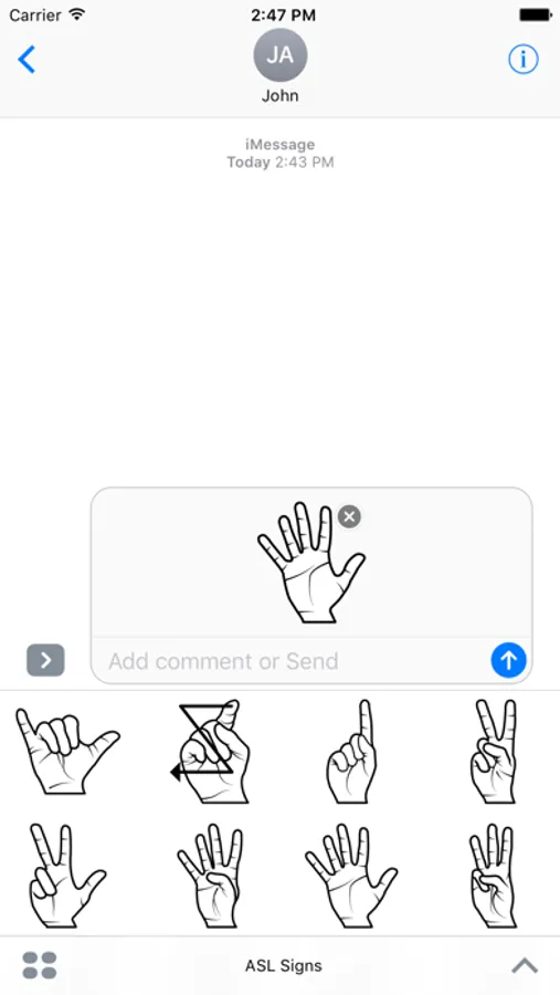 Learn or teach fingerspelling (ASL) anywhere with sending or commenting messages with single letters! Or simply use it as a Code language. These beautiful graphics are even useful to pass certain meanings.