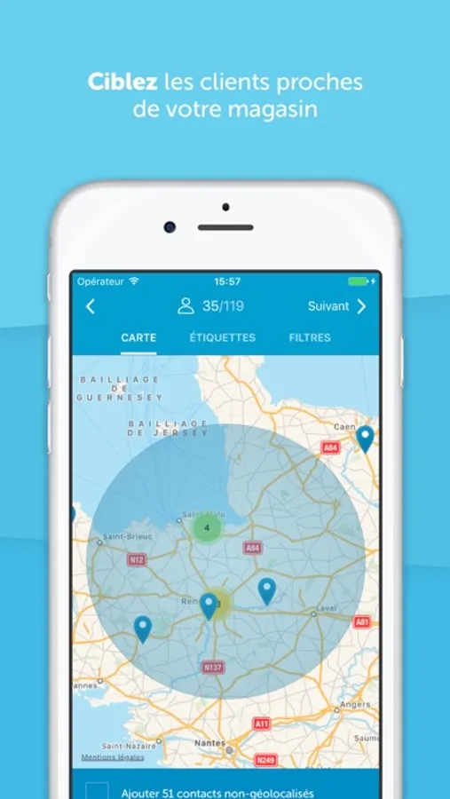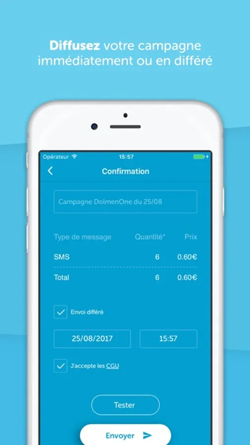 Avec Dolmen One, créez directement depuis votre smartphone des campagnes de communication SMS et SMS enrichi ciblées, adressées à votre base de données clients.