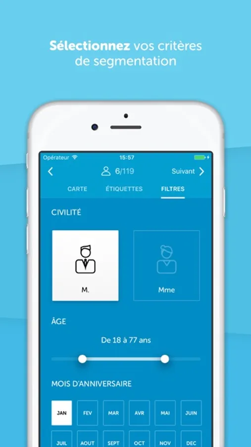 - Définissez votre ciblage à partir des critères de segmentation de votre base de données (localisation, sexe, âge, segment client…)