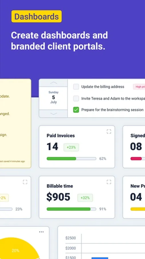 All your projects, tasks, invoices, files and more in one centralised platform.