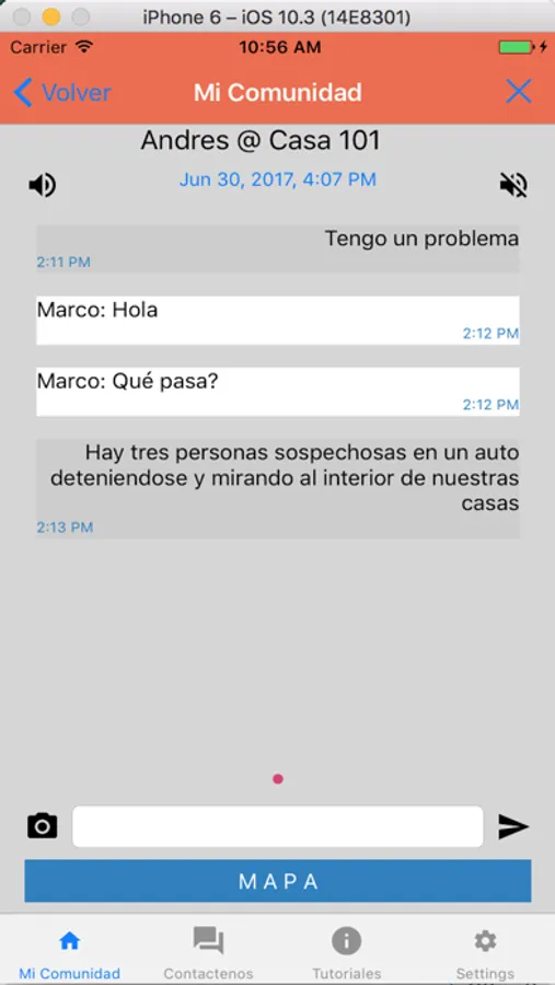Once the community has been defined, any user can trigger an alert (yellow) or alarm (red) to ask their community for help whenever there is an emergency in progress.