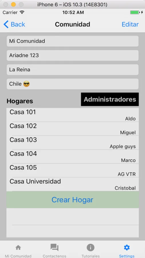 Allows the creation of communities that are composed of homes, each home has a family group composed of users.