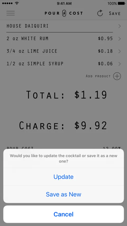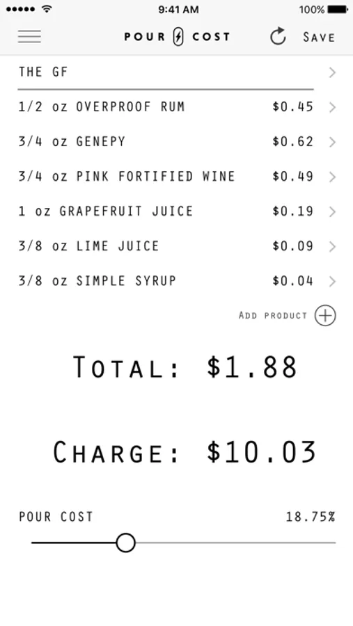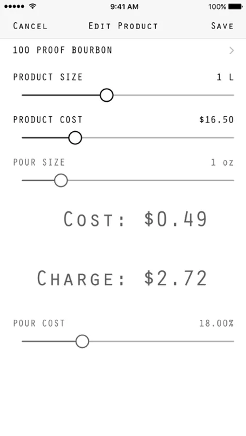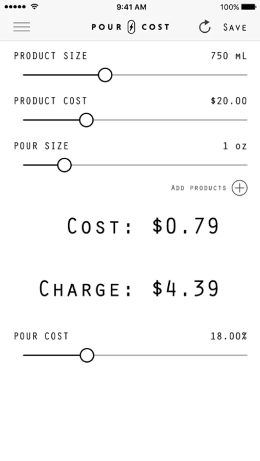 In bars and restaurants in the US, we order bottles of booze by the liter, serve their contents by the ounce, and charge by the dollar based on a target cost percentage. This makes for taxing math that we’d all rather not do. The Pour Cost app does that math for you, without the need to type anything in. You adjust the sliders to fit the product, cost, pour, and margin you desire — and Pour Cost does the work.