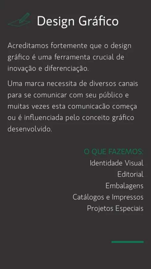 Neste aplicativo você poderá conhecer melhor as áreas de atuação desta empresa de comunicação estratégica que tem o design como ferramenta de inovação e diferencial para seus clientes.