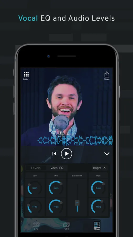 * Polish your recording with professional Vocal EQ and Audio Levels.