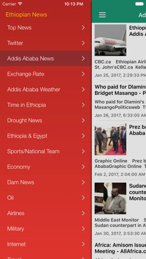 Breaking Ethiopian News Today + Radio & Ethiopian Music tracks at your fingertips, with notifications support! Get the latest Ethiopia News including updates on its economy, drought, oil, military, relations with Egypt and much more. Individual news sections dedicated to top cities Addis Ababa, Dire Dawa, Mekelle, Adama, Bahir Dar & Gondar will keep you informed about local news there. Several streaming Ethiopian music radio stations plus music tracks are provided, but please note that they are not in English most of the time.