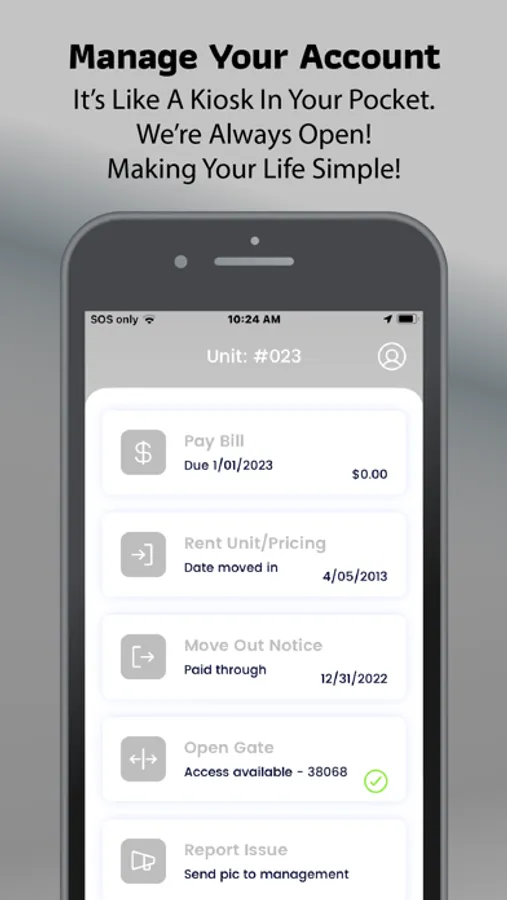 Our Self Storage App makes your fast paced schedule a bit easier! Our App allows you to check your balance, send rent payments, rent units at some of our locations, open the entrance gate at certain locations, contact our front office and so much more!