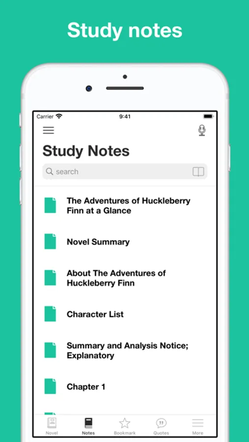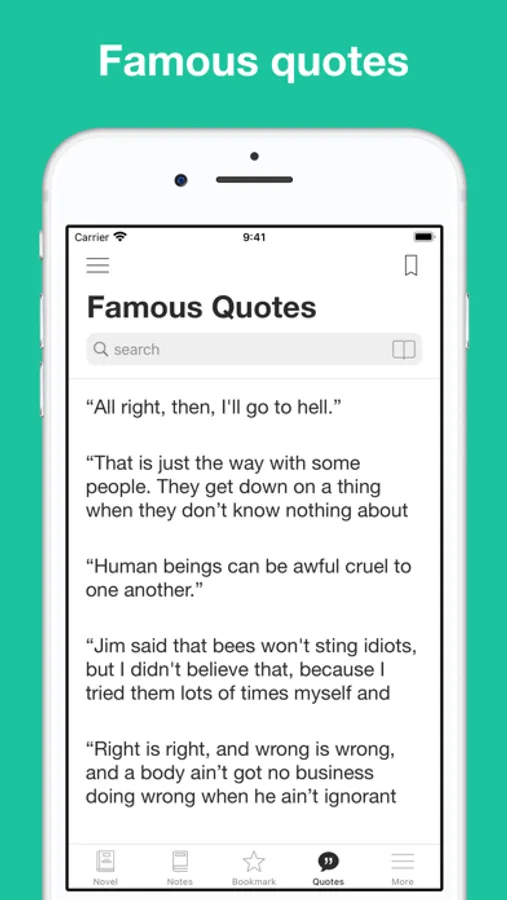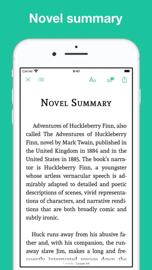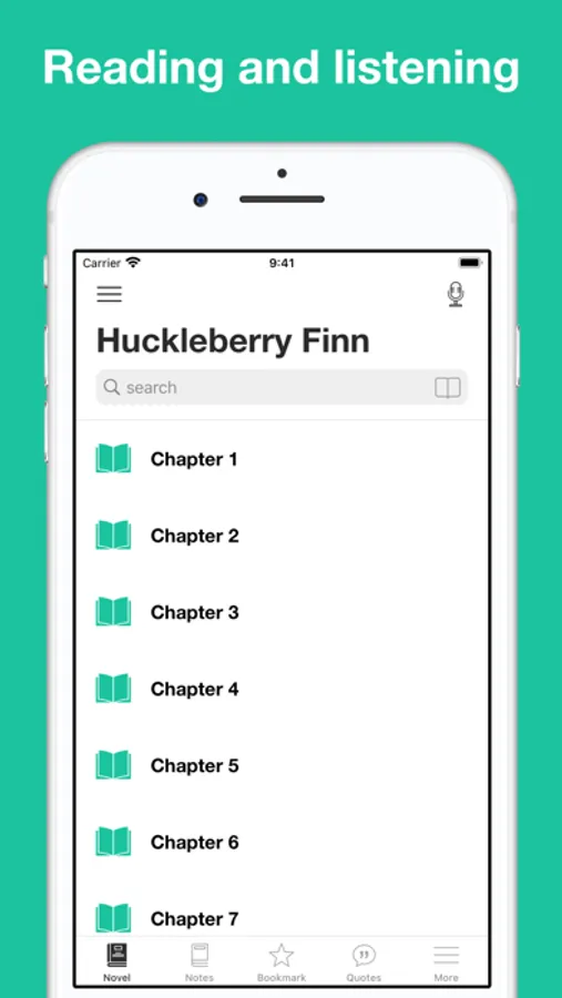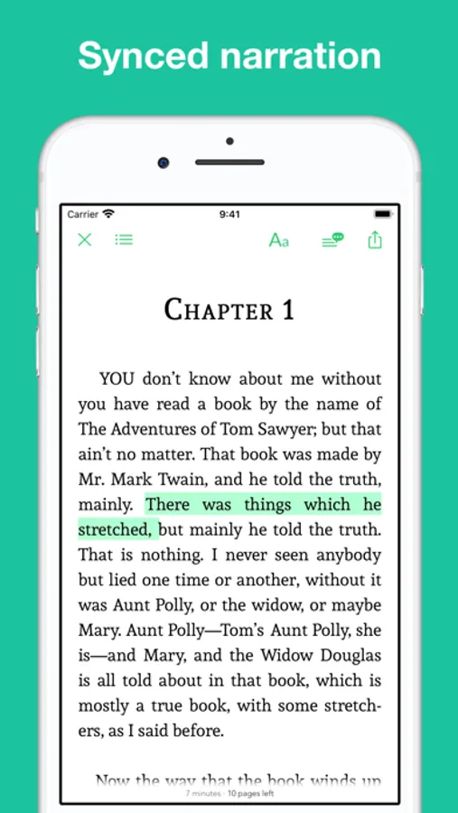 This app combines the novel "Adventures of Huckleberry Finn" by Mark Twain with professional narration enabling advanced functions like sync transcript, read aloud (a professional narration synchronized with the highlighted text.)