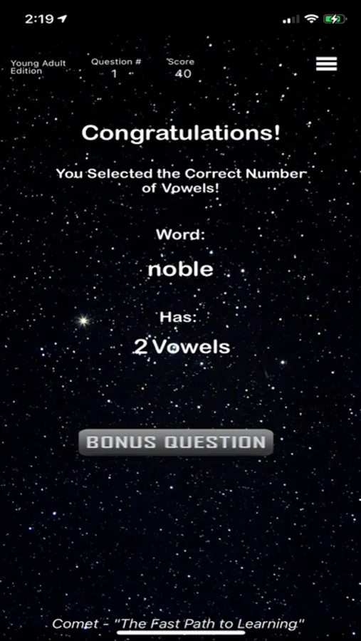 Benefits of playing Comet The Spelling Game - Enrich your vocabulary - Advance reading comprehension - Enhance writing skills. Maximize your brain!