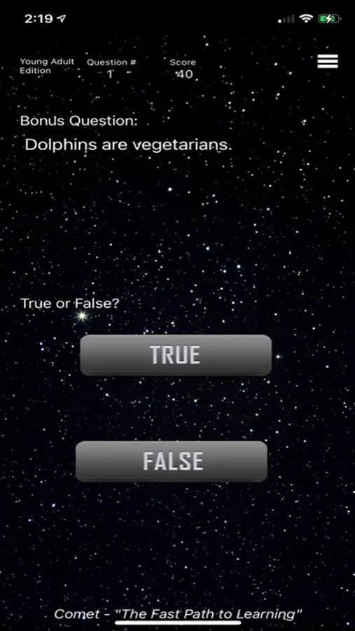 - There's more fun once you answer the Bonus Question, based on True and False questions.