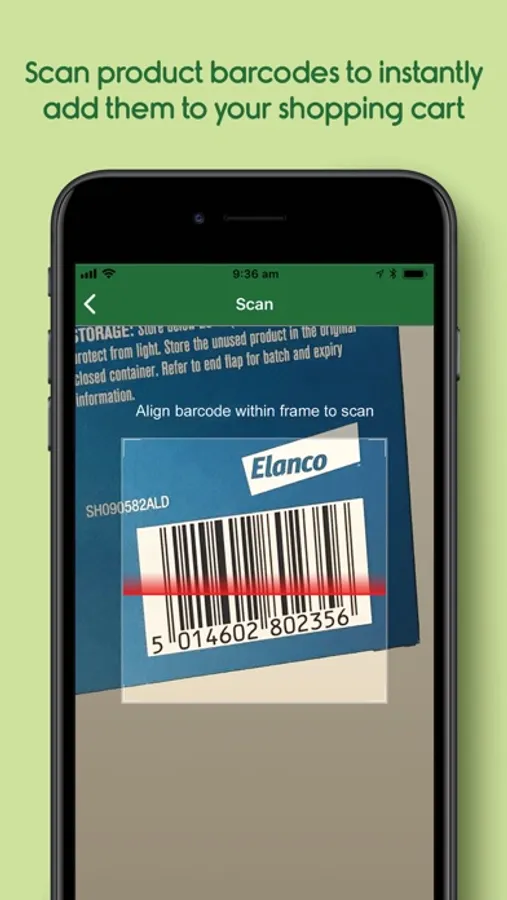 - Scan product barcodes to instantly add them to your shopping cart