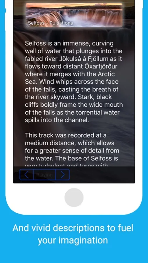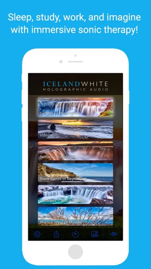 Don’t subject yourself to artificial noise; your subconscious knows the difference. Instead, utilize the far superior natural forms within Iceland White. Your mind and body will thank you. With six infinitely-looping tracks, an elegant and simple user interface, and endless uses for Iceland White, there’s something for everyone. Connect with the natural world and find what millions have already discovered: the amazing universe of Naturespace Holographic Audio.