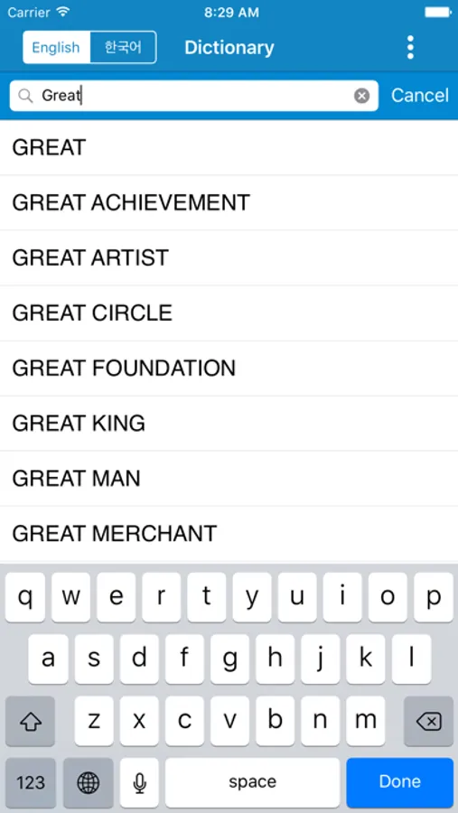 English to Korean Dictionary: The second feature of the Korean to English Dictionary app is that it brings you English to Korean translation by finding out the difficult meanings of English words in Korean 한국어에서 영어로 번역