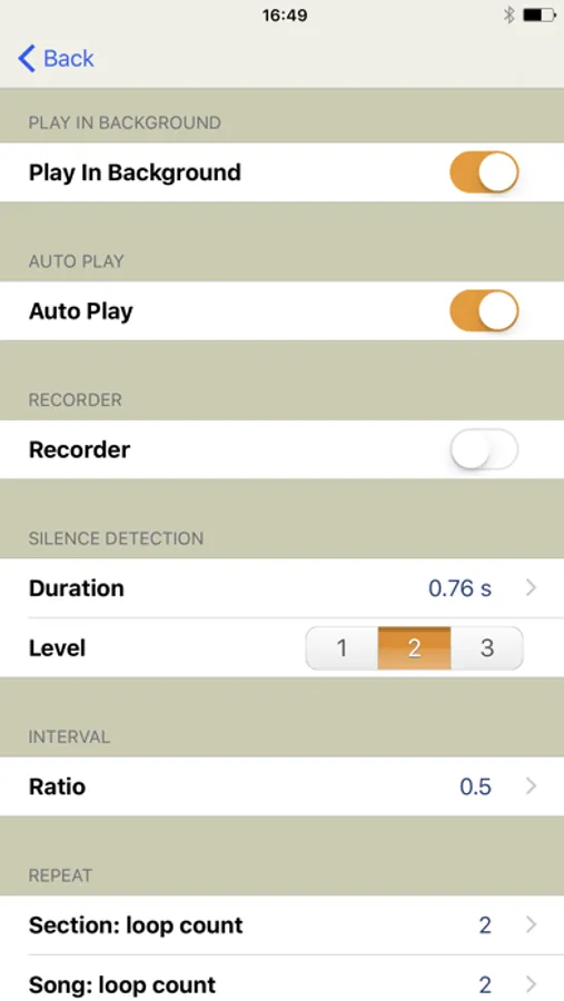 * Interval after phrase playback can be set in seconds or as a ratio to phrase time