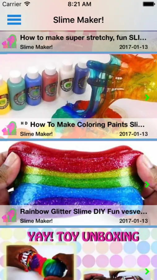Slime Maker is continually updated and provides you easy access to basic, intermediate and expert tutorial videos. Scour through hundreds of videos showing the latest recipes and instruction. Add fun patterns textures to your slime creations. If your addicted to making slime, then this app is for you.