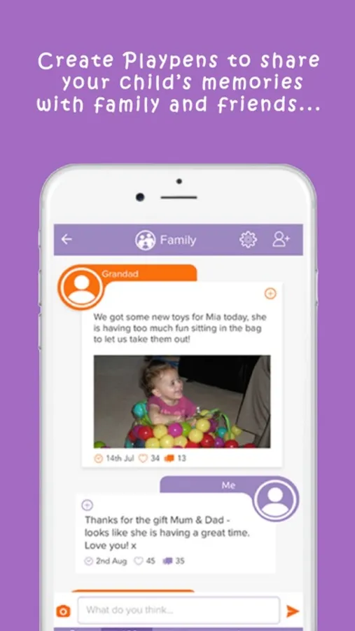 Creating a Playpen gives you complete control over who sees your content whilst creating a totally interactive experience for your 'Buddies' to enjoy. Add your friends and family to different Playpens and allow them to share in the joy of seeing your child grow.