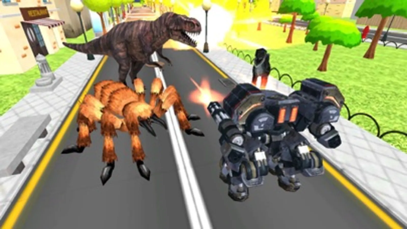 If you are ready for serious battles, welcome to “Robot Vs Monster”! You will have no mercy of the enemy, as you will play against dragons, giant scorpions, many type of dinosaurs,Carnotaurus,Sarcosuchus,T-Rex, Velociraptor,Spinosaurus and other heavyweight monsters. Despite the fact that the large enemy certainly looks more frightful than the little one, it also has its advantages. And one of the main advantages is its sluggishness, which lets your character run around the monster and strike it from various sides. Use sensor control for making blows by swipes and moving with help of touching the screen to the sides and up/down. Do not forget to upgrade your Robot and buy hard armour and up-to-date weapon for your Robot as even more scary rivals will wait for your Robot in the future.