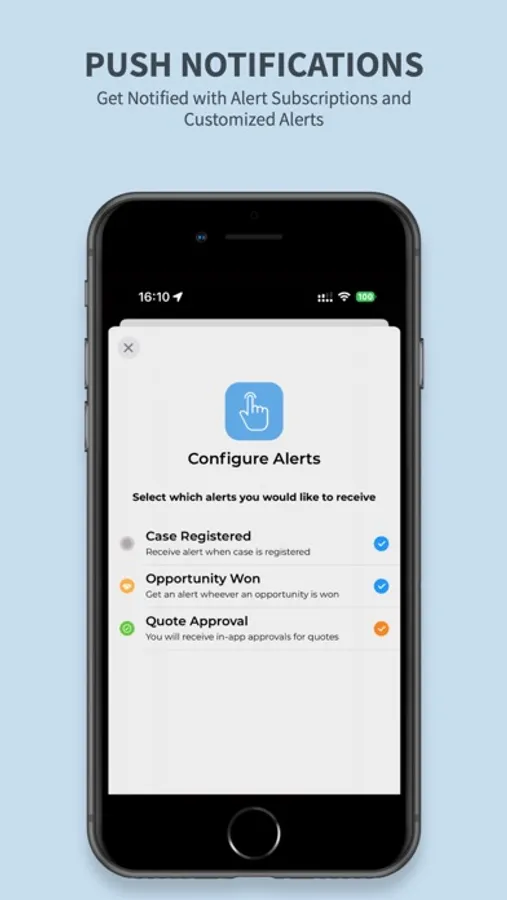 Receive notifications from CRM in an instant. A new lead has been registered or assigned to you, get notified. A new case has been reported, get notified. A new time report has been submitted, get notified.